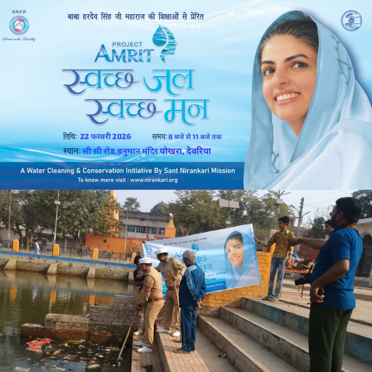 *देवरिया* जब सेवा साधना बन जाए और प्रकृति के प्रति संवेदना जीवन का मूल मंत्र हो, तब पावन संकल्प जन्म लेते हैं। मानव सेवा और लोककल्याण की इसी दिव्य चेतना को साकार रूप प्रदान करने हेतु संत निरंकारी मिशन द्वारा प्रोजेक्ट अमृत के अंतर्गत स्वच्छ जल, स्वच्छ मन’ अभियान के चौथे चरण का भव्य शुभारंभ रविवार, 22 फरवरी 2026 प्रातः 8 बजे से 11 बजे तक परम श्रद्धेय सतगुरु माता सुदीक्षा जी महाराज के निर्देशानुसार समस्त भारत में भव्य रूप से आयोजित किया गया।