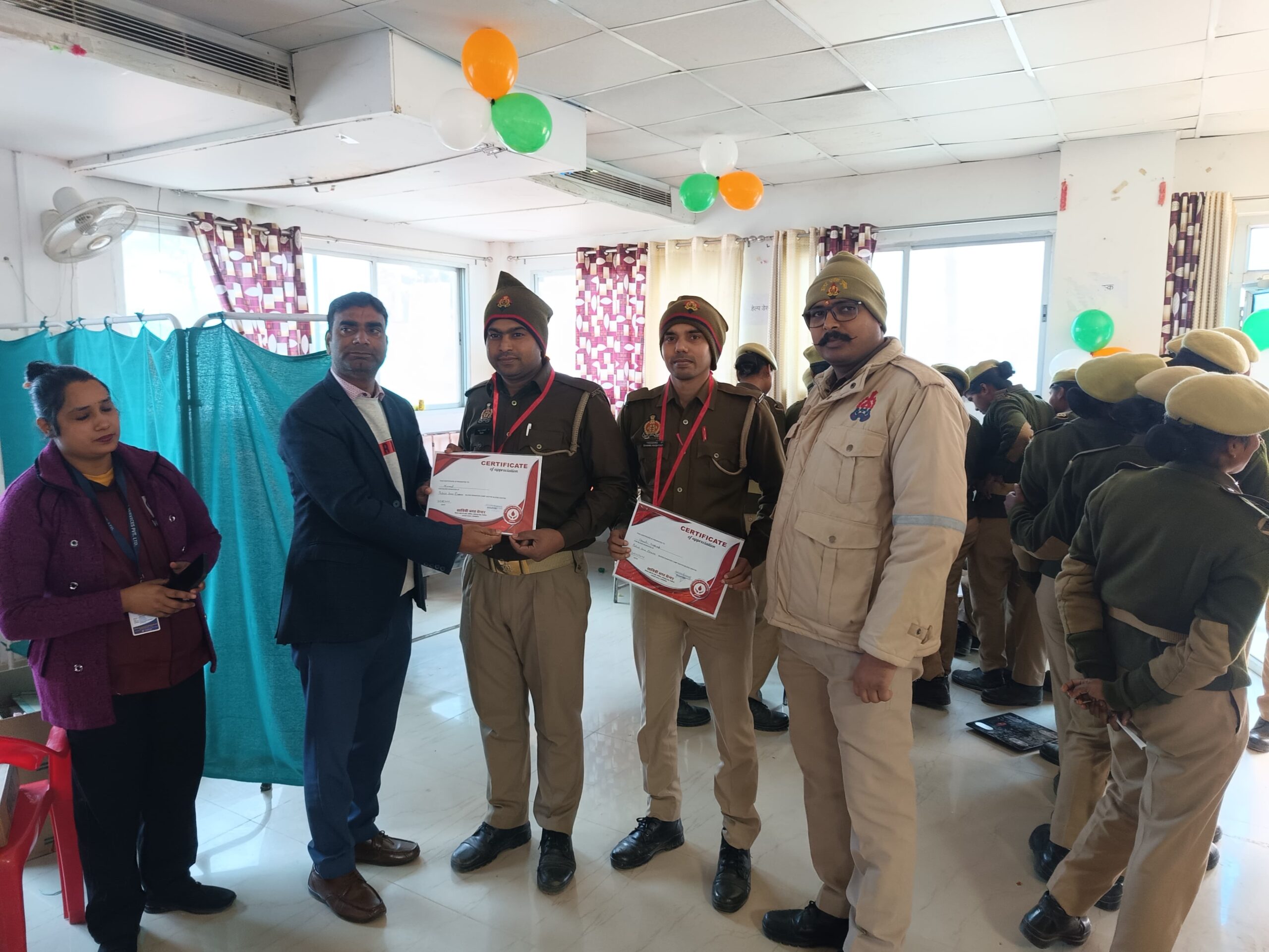 इस मौके पर पुलिसकर्मियों ने बढ़ चढ़ कर रक्तदान में हिस्सा लिया। इस मौके पर डॉ० मिनाक्षी सिंह, डॉ० नीलम पाण्डेय, डॉ० चन्दन, डॉ० विवेक शर्मा, दीपक तिवारी, अमरेश सिंह, प्रतिसार निरीक्षक श्री विजय राज सिंह, सौरभ त्रिपाठी व अन्य पुलिसकर्मी मौजूद रहे।