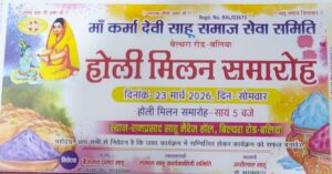 मां कर्मा देवी साहू समाज सेवा समिति की पहल, शाम 5 बजे राम प्रसाद साहू मैरिज हॉल में होगा आयोजन।