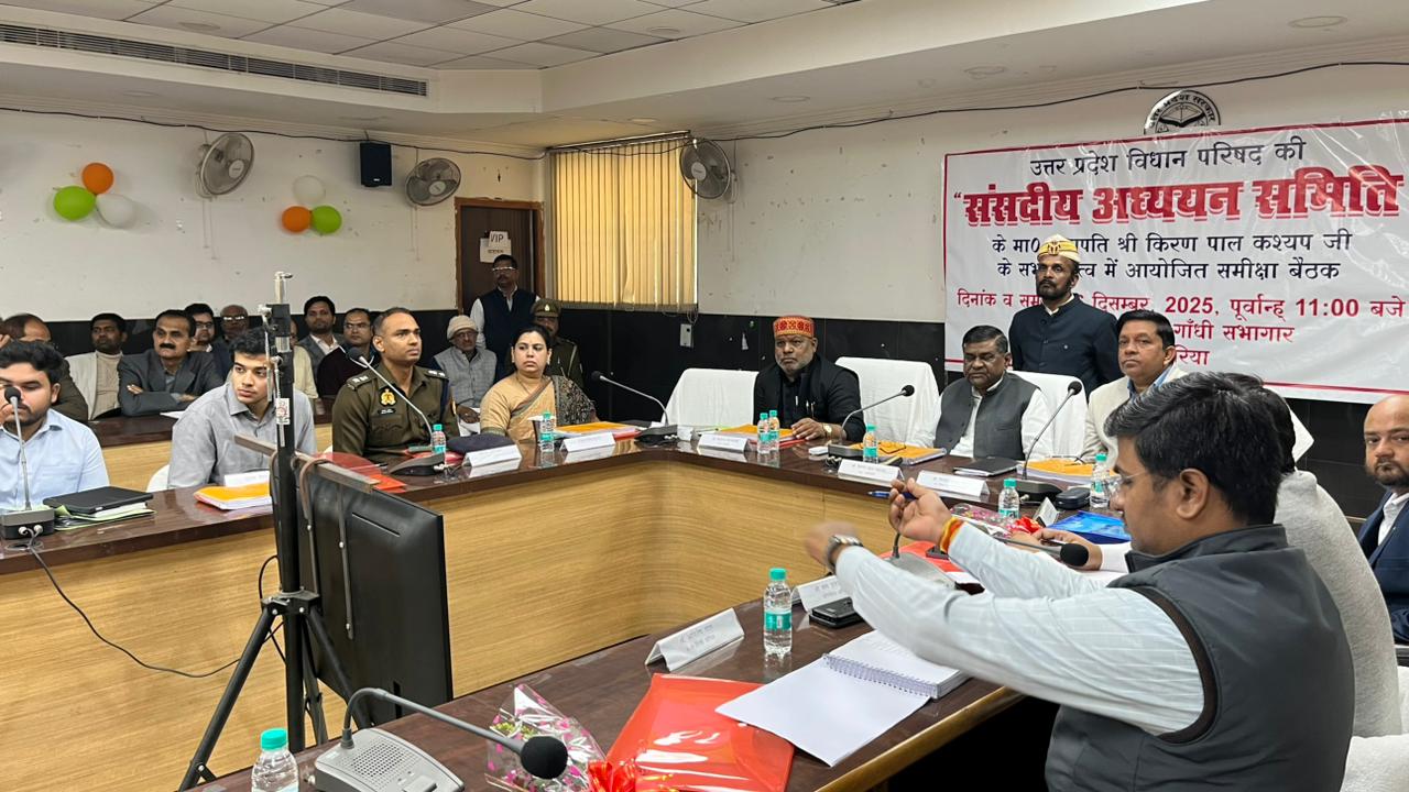 देवरिया उत्तर प्रदेश विधान परिषद की संसदीय अध्ययन समिति ने विकास भवन के गांधी सभागार में जनपद के विभागाध्यक्षों के साथ बैठक कर विभिन्न विभागीय योजनाओं, प्रगति एवं आवेदनों के निस्तारण की विस्तृत समीक्षा की। बैठक की अध्यक्षता समिति के सभापति किरण पाल कश्यप ने की।
