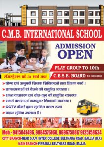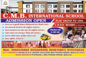 बलिया : बिल्थरारोड क्षेत्र के अभिभावकों के लिए अच्छी खबर है कि C.M.B. INTERNATIONAL SCHOOL में शैक्षणिक सत्र 2026-27 के लिए प्रवेश प्रक्रिया शुरू कर दी गई है। विद्यालय प्रबंधन ने जानकारी देते हुए बताया कि बच्चों को उच्च स्तरीय शिक्षा कम खर्च में उपलब्ध कराने का प्रयास किया जा रहा है।
