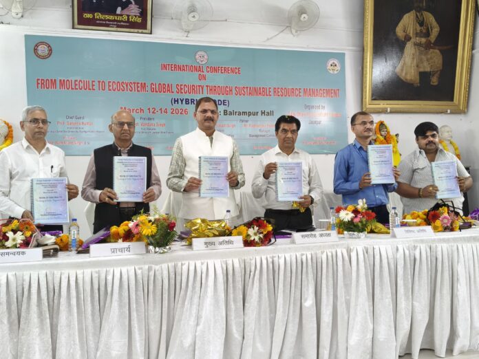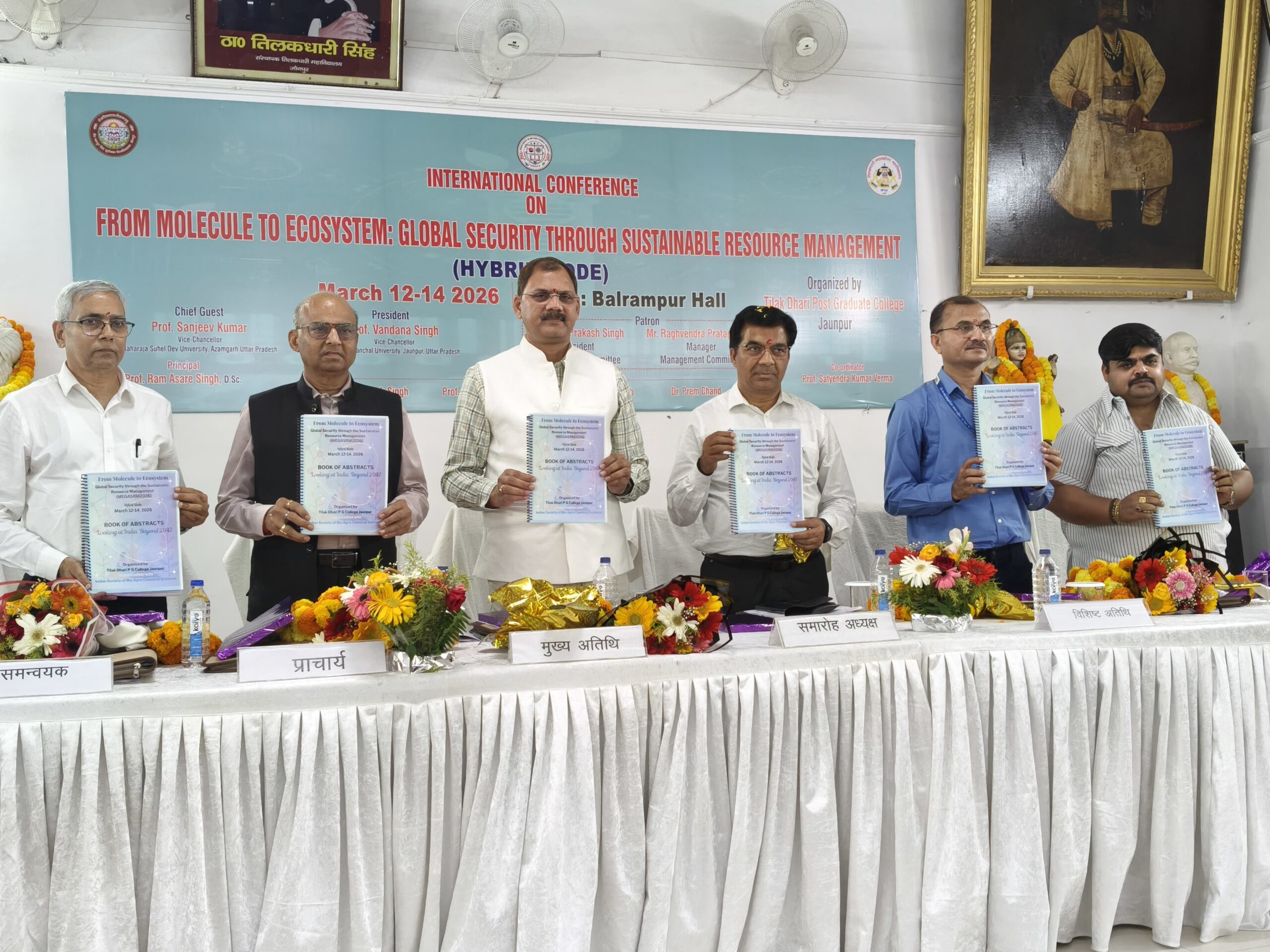 तिलकधारी स्नातकोत्तर महाविद्यालय, जौनपुर के ऐतिहासिक बलरामपुर हाल में आज दिनांक 12 मार्च 2026 (गुरुवार) से तीन दिवसीय अंतर्राष्ट्रीय संगोष्ठी का शुभारंभ हुआ। संगोष्ठी का विषय “अणु से पारिस्थितिकी तंत्र तक: स्थायी संसाधन प्रबंधन के माध्यम से वैश्विक सुरक्षा” रखा गया है।