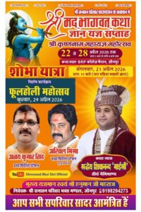 श्री सनातन परिवार फाउण्डेशन के तत्वावधान में जौनपुर के बी.आर.पी. कॉलेज मैदान में 22 से 28 अप्रैल 2026 तक “श्री मदभागवत कथा ज्ञान यज्ञ सप्ताह” एवं “श्री कृष्णनाम महायज्ञ महोत्सव” का दिव्य आयोजन किया जा रहा है।