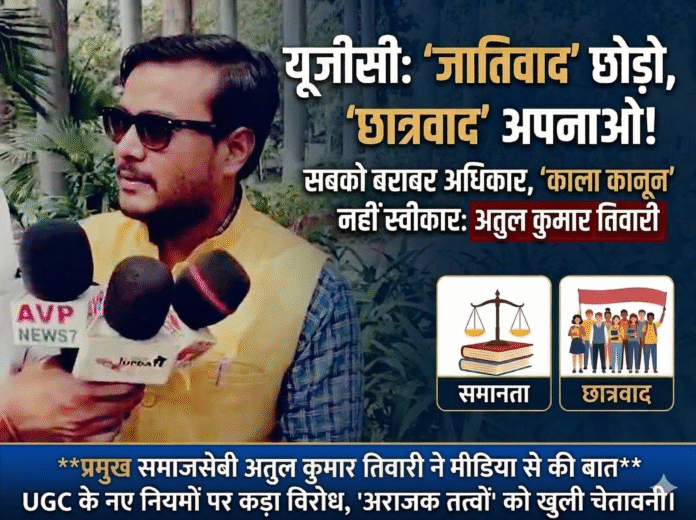यूजीसी का ‘काला कानून’ छात्र एकता के खिलाफ, ‘जातिवाद’ नहीं ‘छात्रवाद’ की हो स्थापना : समाजसेवी अतुल तिवारी