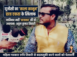 अराजक तत्वों और बदसलूकी करने वालों को चेतावनी– मीडिया बाइट के दौरान अतुल कुमार तिवारी ने उन अराजक तत्वों को कड़ी फटकार लगाई, जो यूजीसी के नाम पर समाज में नफरत फैला रहे हैं। उन्होंने महिला पत्रकार रुचि तिवारी के साथ हुए अभद्र और शर्मनाक व्यवहार की कड़े शब्दों में निंदा की।